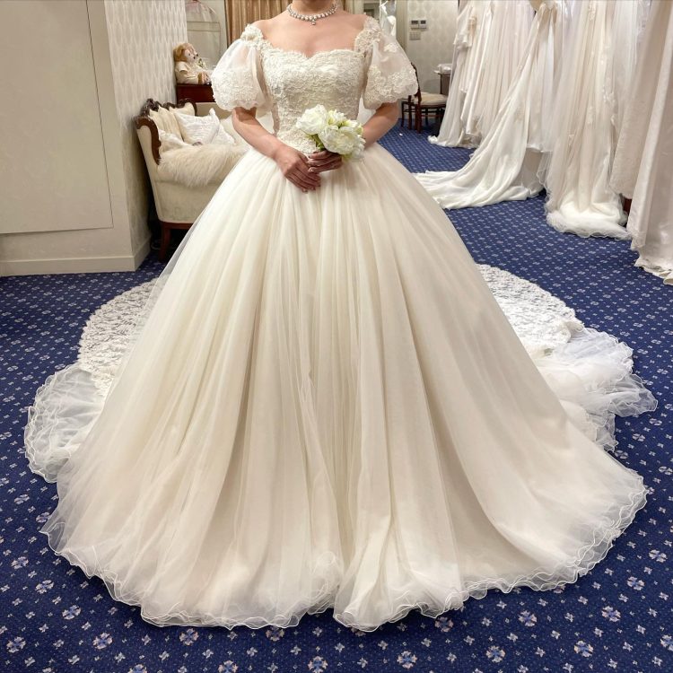 こちらのドレスはDYO-2002のオーダードレスでパフスリーブデザインになっているんだそう!