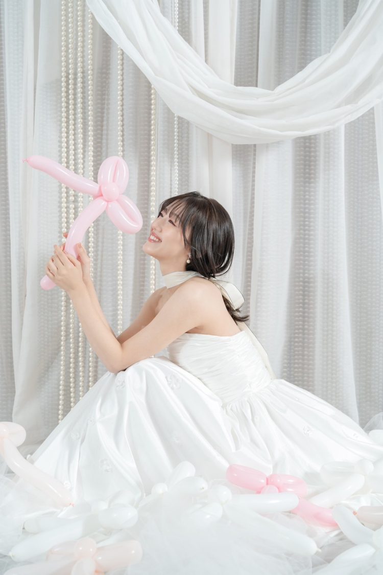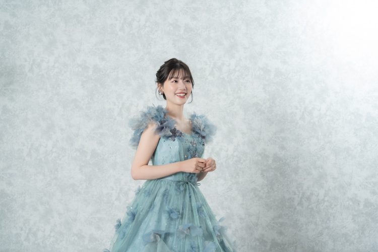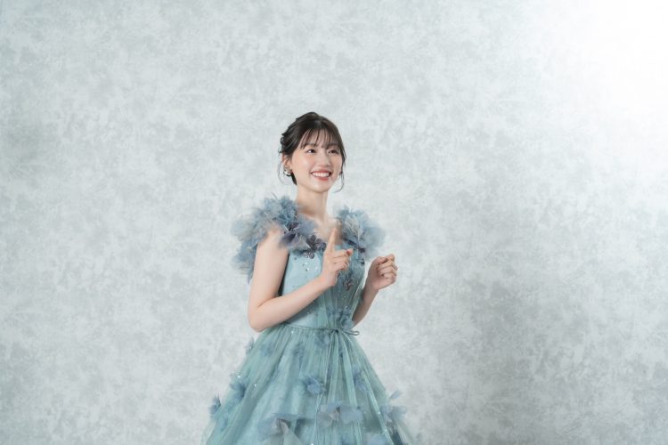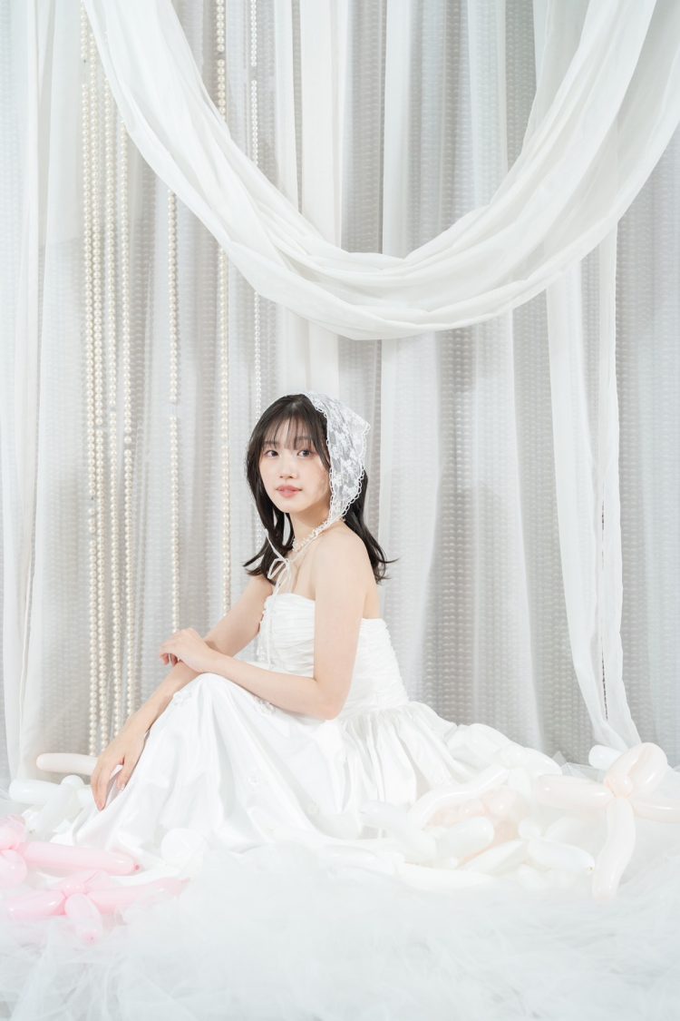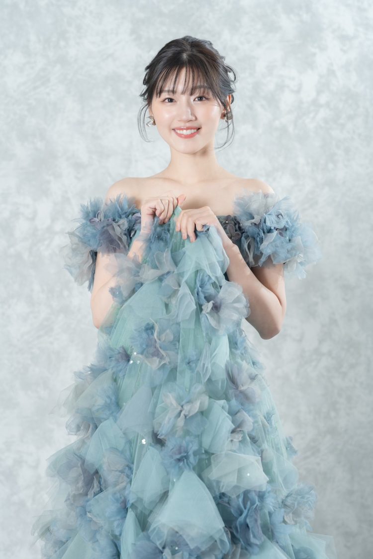 ウェディング:私は普段、柔らかくてふんわりとした雰囲気を持たれることが多いんです。でも今回は、あえてシンプルで華やかすぎない、きれいめで大人っぽいドレスに挑戦してみたいと思って選びました。普段とは違う雰囲気を纏うことができてとても嬉しいです。