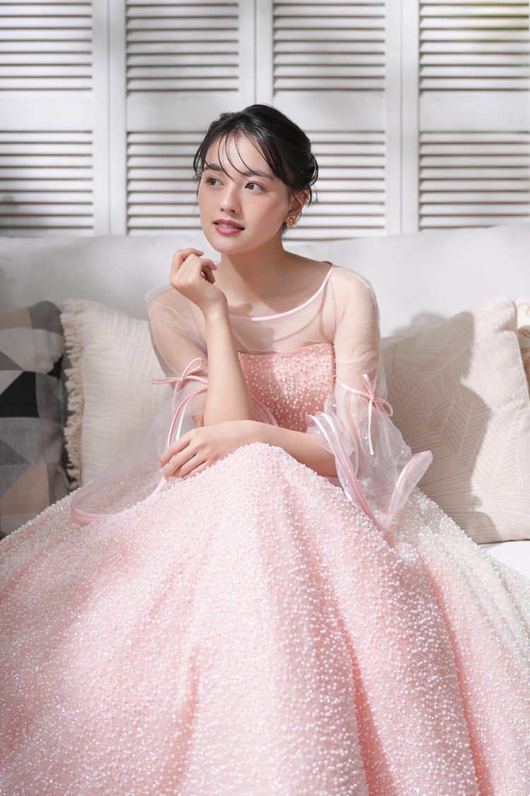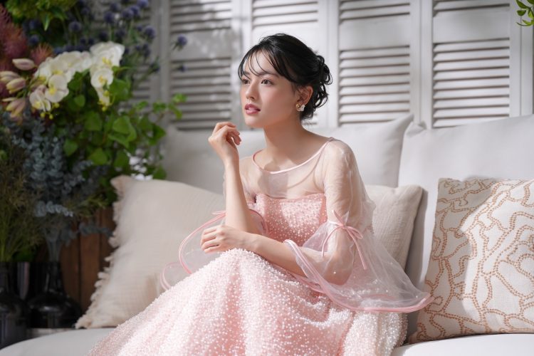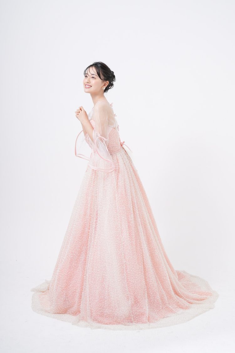 ジュエルパールグリッターを全身に纏い愛らしさとエレガンスを併せ持つ“プリンセス”を演出させるビジュードレス。