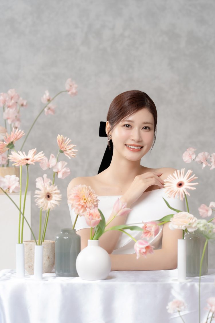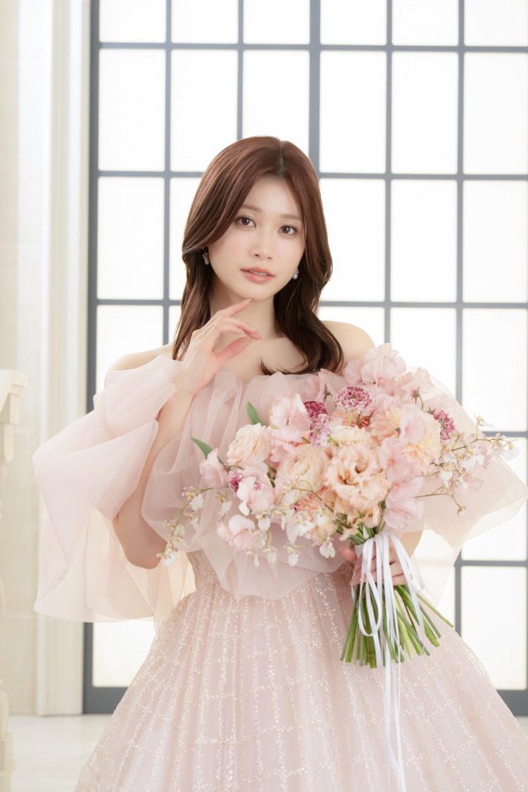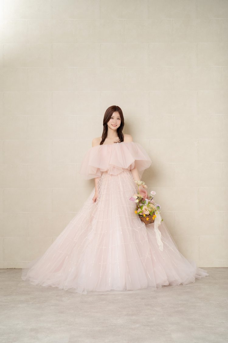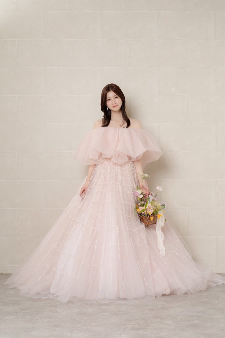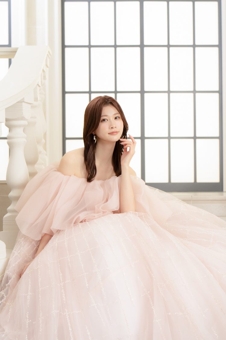 今回着てみて、サテンの艶感があるドレスってやっぱり可愛いなと思いました。マネージャーさんからは「絶対にマーメイドドレスが似合うと思うよ」と言われているので、マーメイドラインにも少し興味があります。カラードレスは、今回のようなピンクももちろん好きなんですが、ブラウンやベージュなど、少し大人っぽくて“おしゃれ感”のあるカラーのドレスも気になっています。