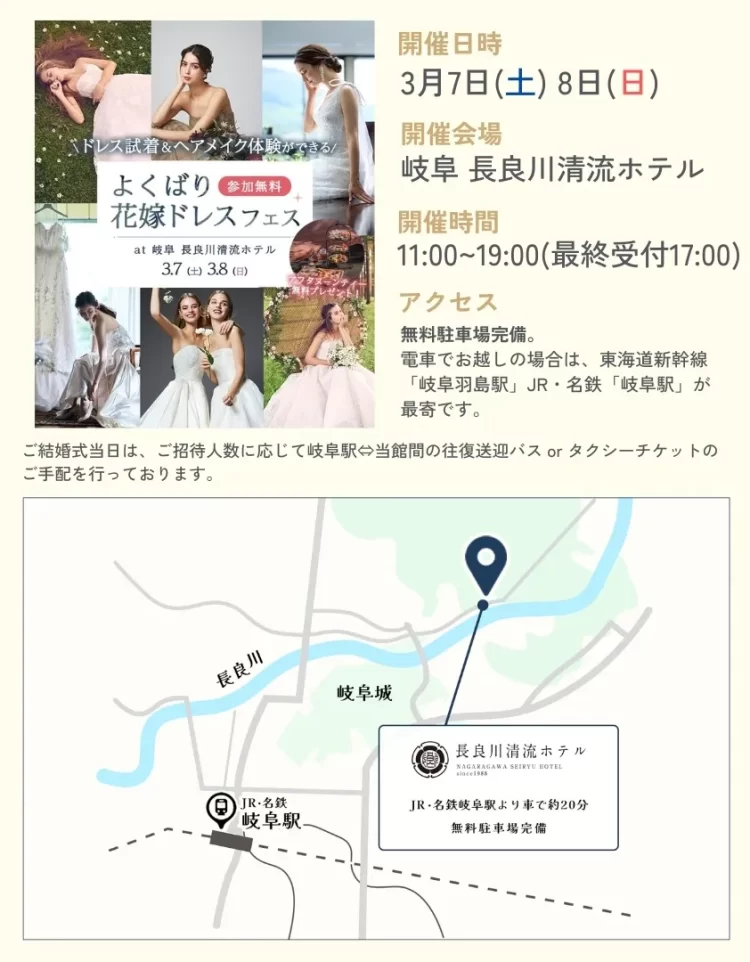今回は人気会場「長良川清流ホテル」で開催!